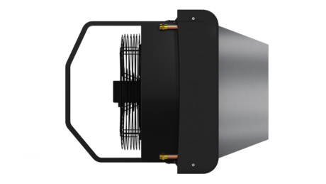 Конфузор монтируется под кровлей в помещениях с высокими потолками, в которых нет возможности установки тепловентиляторов на вертикальных конструкциях (колонны, стены).