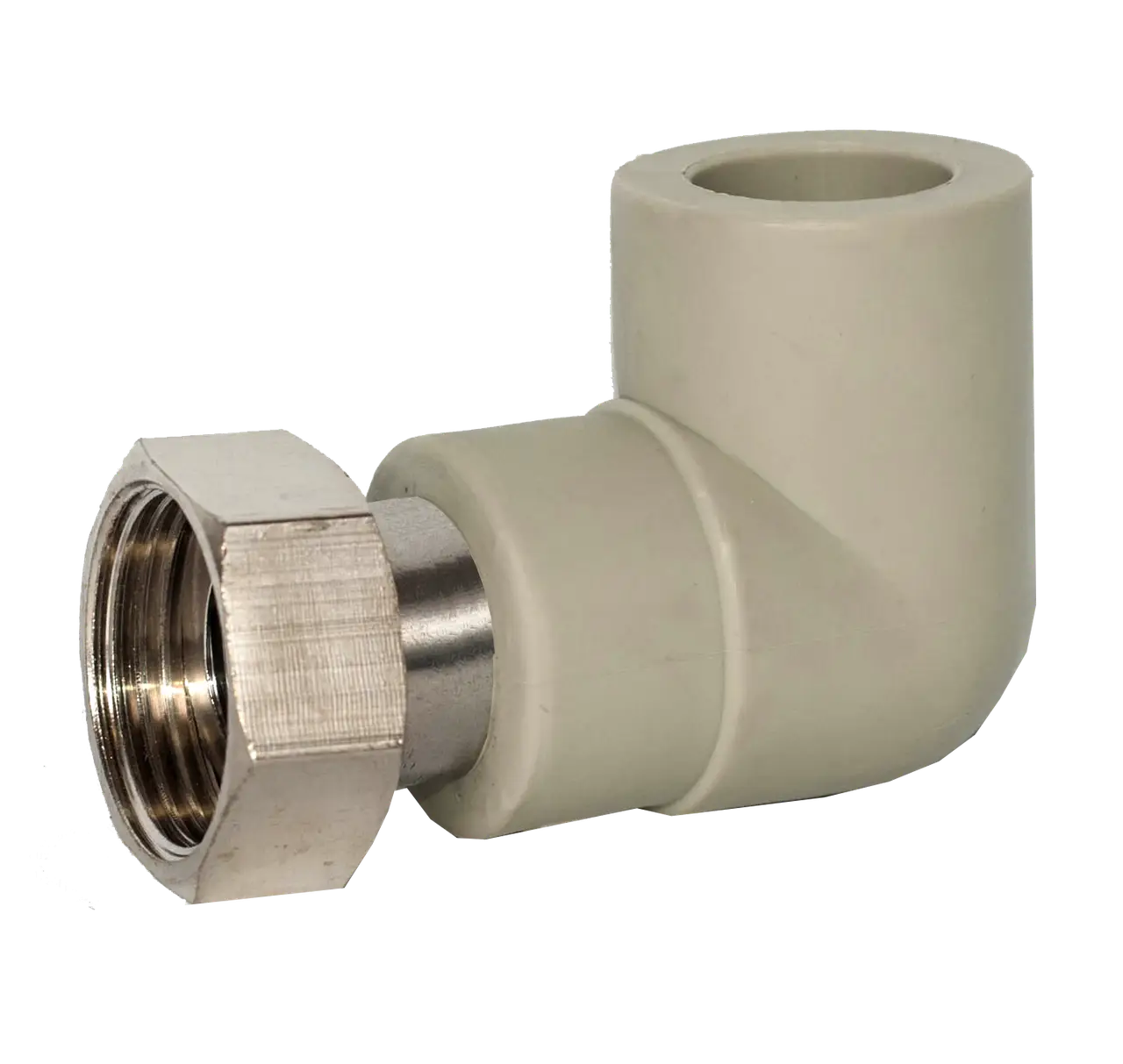 Угольник PP-R комбинированный серый с накидной гайкой VALFEX