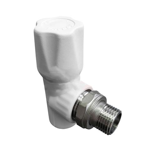 Клапан (вентиль) PP-R запорный белый Ру25 НР угловой для радиатора VALFEX